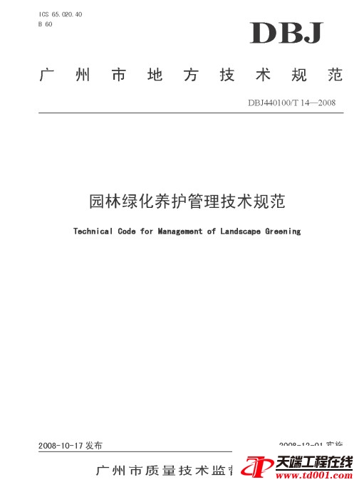 DBJ440100/T14-2008《园林绿化养护管理技术规范》